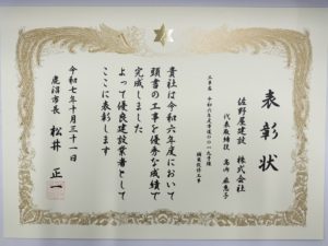 【令和7年度鹿沼市優良建設業者】表彰